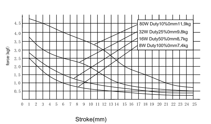 縱向:代表電磁鐵在對應行程時的力量 單位為克(g)