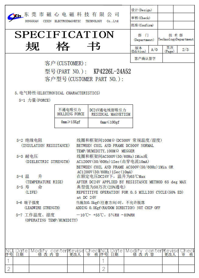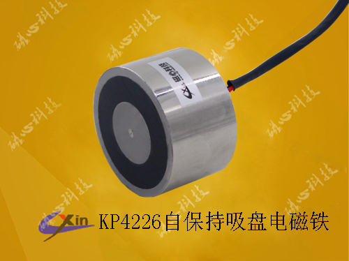 自保持吸盤電磁鐵KP4226,又稱為失電電磁鐵,就是電磁鐵在短電狀態(tài)下有磁性,通電消磁,然后再斷電有具有磁性的一款自保持吸盤電磁鐵。