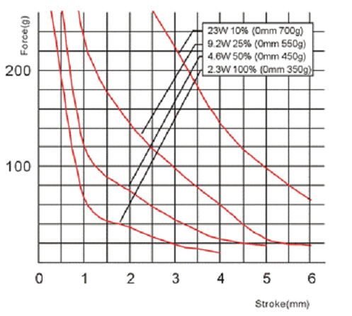 二、U0520微型推拉電磁鐵的行程力量曲線圖: