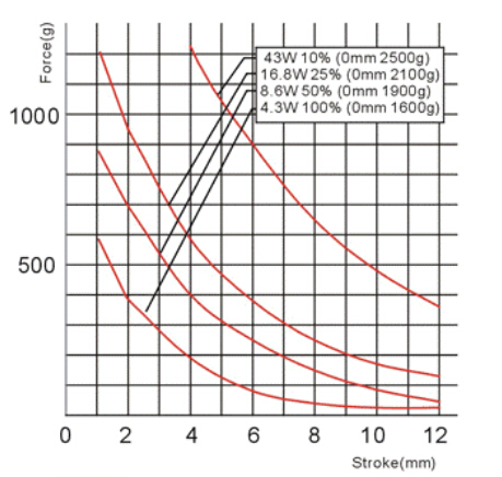 縱向:代表電磁鐵在對(duì)應(yīng)行程時(shí)的力量 單位為克(g)