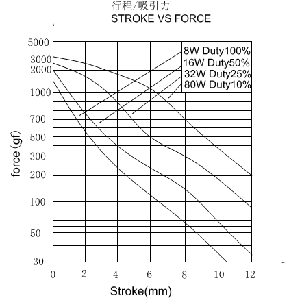 縱向:代表電磁鐵在對應行程時的力量 單位為克(g)