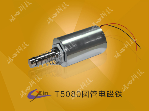 圓管電磁鐵T5080 是磁心科技專為自動化設備定制的一款推拉式電磁鐵,產品的整體結構為圓管型,可根據客戶的需要焊接支架。圓管式電磁鐵T5080直徑為50mm,高度為80mm,行程可以達到30mm以上,力量可以做到8KG以上。